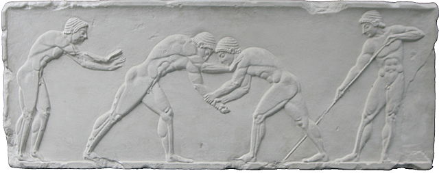 Det har ju tyvärr inte gått så bra för de svenska brottarna i årets OS. Bättre då att vända blicken mot antikens brottare. För brottning förekom ju redan vid de äldsta olympiska spelen. Antikens brottning skiljer sig inte mycket från dagens brottning, med undantag av en liten detalj: graden av brutalitet. Under antiken fanns det två typer av brottning: stående brottning och markbrottning. I stående brottning var syftet att kasta sin motståndare till marken. Tre fall var nödvändiga för att vinna och därmed blev vinnaren känd som en triakter eller ”tredubblare”. Med fall menades att man rörde vid marken med ryggen, skuldrorna eller höften. Tävlingen pågick utan pauser tills en av de tävlande kastat sin motståndare tre gånger. I markbrottningen var det inte antalet fall som ledde till seger, utan tävlingen fortsatte tills en av de tävlande erkände sig besegrad. Detta gjorde han genom att lyfta armen och peka med ett finger.