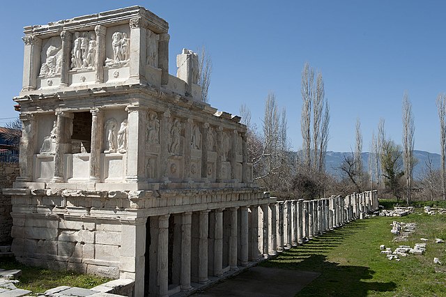 Claudius besökte Britannien medan ön höll på att erövras och ärades därför med epitetet Britannicus. Invasionen av de brittiska öarna var den territoriella erövring som fungerade som signum för hans regeringstid och något Claudius var mäkta stolt över. Vid utgrävningar av den romerska staden Aphrodisias i västra Mindre Asien (Turkiet) hittades 1980 en relief föreställandes Claudius och Britannia. Reliefen påträffades i en byggnad kallad Sebasteion, vilket var ett slags tempel dedikerat till de gudomligförklarade romerska kejsarna. Byggnaden påbörjades under kejsare Tiberius och färdigställdes under kejsarna Claudius och Nero. Sebasteion byggdes helt i marmor och bestod av flera våningar.