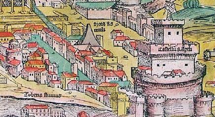 Romulus pyramid ska ha varit betydligt större än Cestius. I medeltida skrifter kan vi läsa att den var mellan 32 och 50 meter hög och att basen mätte 25 meter. Den förefaller ha varit ett populärt besöksmål under medeltiden och förekommer på många målningar. Trots detta började man tidigt att förstöra den, t.ex. användes den marmor som täckte pyramiden till att bygga trapporna till Peterskyrkan. Ena sidan ska ha förstörts i samband med att påven Alexander VI lät bygga vägen Borgo Nuovo år 1499, men resten av monumentet överlevde ytterligare ett århundrade, tills det revs för att kyrkan Santa Maria in Traspontina skulle kunna byggas.