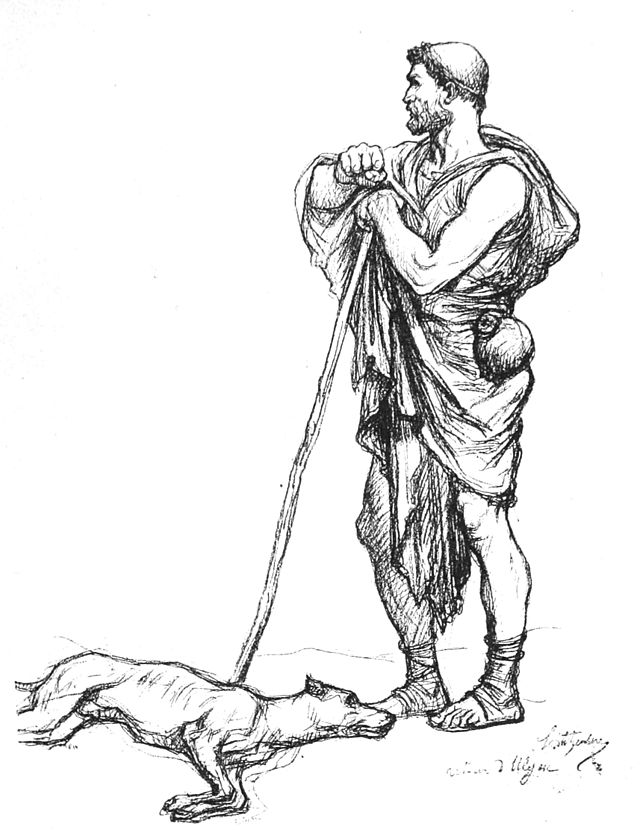 Minns ni den monstruösa jycken Kerberos som vi tidigare skrivit om? Han var ju ett trehövdat odjur som vaktade ingången till Hades (underjorden). En minst lika berömd, om än inte lika fasansfull hund, är Argos. Hans husse är ingen mindre än Odysseus, en av den grekiske litteraturens stora hjältar. Odysseus var en av de legendariska greker som deltog vid det krig i Troja som skildras av Homeros i Iliaden. Den listige och vältalige Odysseus innehar även huvudrollen i Homeros andra epos Odyssén.