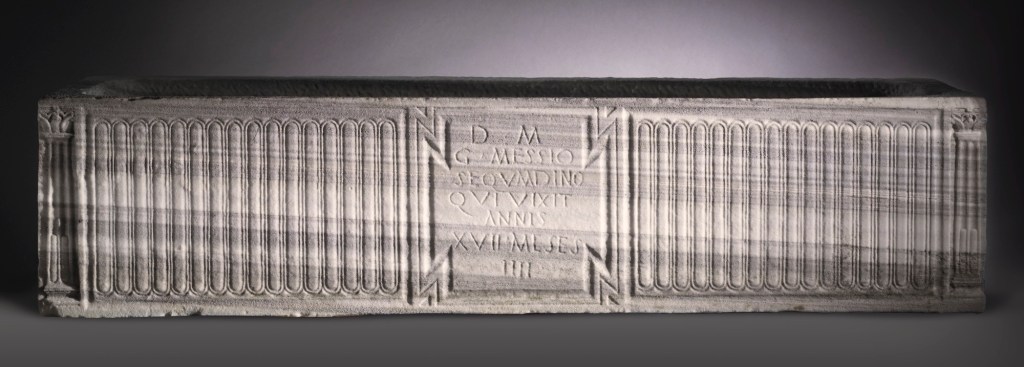 Sarkofagen i sig var kanske inte så märkvärdig, även om den var vackert utsmyckad med en tabula ansata, det vill säga en plakett med handtag där namnet på den avlidne var inristad. Sarkofagen tros komma från sent 300-tal e.Kr. och hade utifrån inskriften förfärdigats för en romersk yngling vid namn Gaius Messius Sequmdinus, som ska ha avlidit vid en ålder av 17 år och fyra månader. Utöver detta så vet vi dessvärre inte så mycket om denne stackars tonåring, mer än att vi kan utgå från att föräldrarna var snuskigt rika. Platsen där sarkofagen hittades var nämligen på Via Appia, inte långt från den betydligt mer berömda grav som tillhörde Caecilia Metella. Denna väg kantas av en mängd gravar, där de flesta tillhör familjer från Roms absoluta elit, tidigare nämnda Caecilia Metellas svärfar var till exempel ingen annan än Crassus, som tillika var känd som den rikaste snubben i Rom. Så även om vi inte vet så mycket om personen i kistan, kan vi utgå från att hans familj var enormt välbärgade romare.