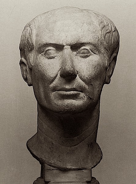 Den första naumachia som vi känner till lät uppföras av Caesar i samband med att han firade sin fyrfaldiga triumf efter att han hade återvänt till Rom år 46 f.Kr. Inför detta tillfälle lät Caesar gräva ut en enorm bassäng nere på Marsfälten inte långt från Tibern. Den exakta platsen vet man inte, men sannolikt var det runt det område so idag kallas för Trastevere. Anledningen till att bassängen hade byggts så nära Tibern var troligtvis för att man skulle kunna använda sig av flodens vatten för att enkelt kunna fylla bassängen. Själva föreställningen involverade flera stora romerska krigsskepp och över 4000 rorsmän. Utöver dessa så hade man även 2000 män som skulle strida mot varandra och spela upp ett sjöslag mellan Thrakernas och Egyptiernas flottor. Trots att denna bassäng måste ha kostat ofantligt mycket att bygga så användes den troligen endast vid detta tillfälle. Den exakta anledningen till att den snabbt togs ur bruk vet vi inte med säkerhet, vissa källor hävdar att det handlade om att Caesar ville bygga ett tempel till Mars Ultor på platsen, medan andra menar att det berodde på att det stillastående vattnet drog till sig myggor som spred sjukdomar.