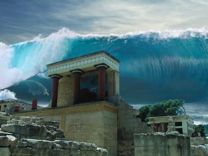 Tsunamis var emellertid ett påtagligt problem. Flera svåra historiska katastrofer kan ha berott på tsunamis, t.ex. är det flera geologer som menar att den minoiska kulturens undergång berodde på att Kreta drabbades av en enorm tsunami efter vulkanutbrottet på Thera (dagens Santorini) runt 1600 f.Kr.